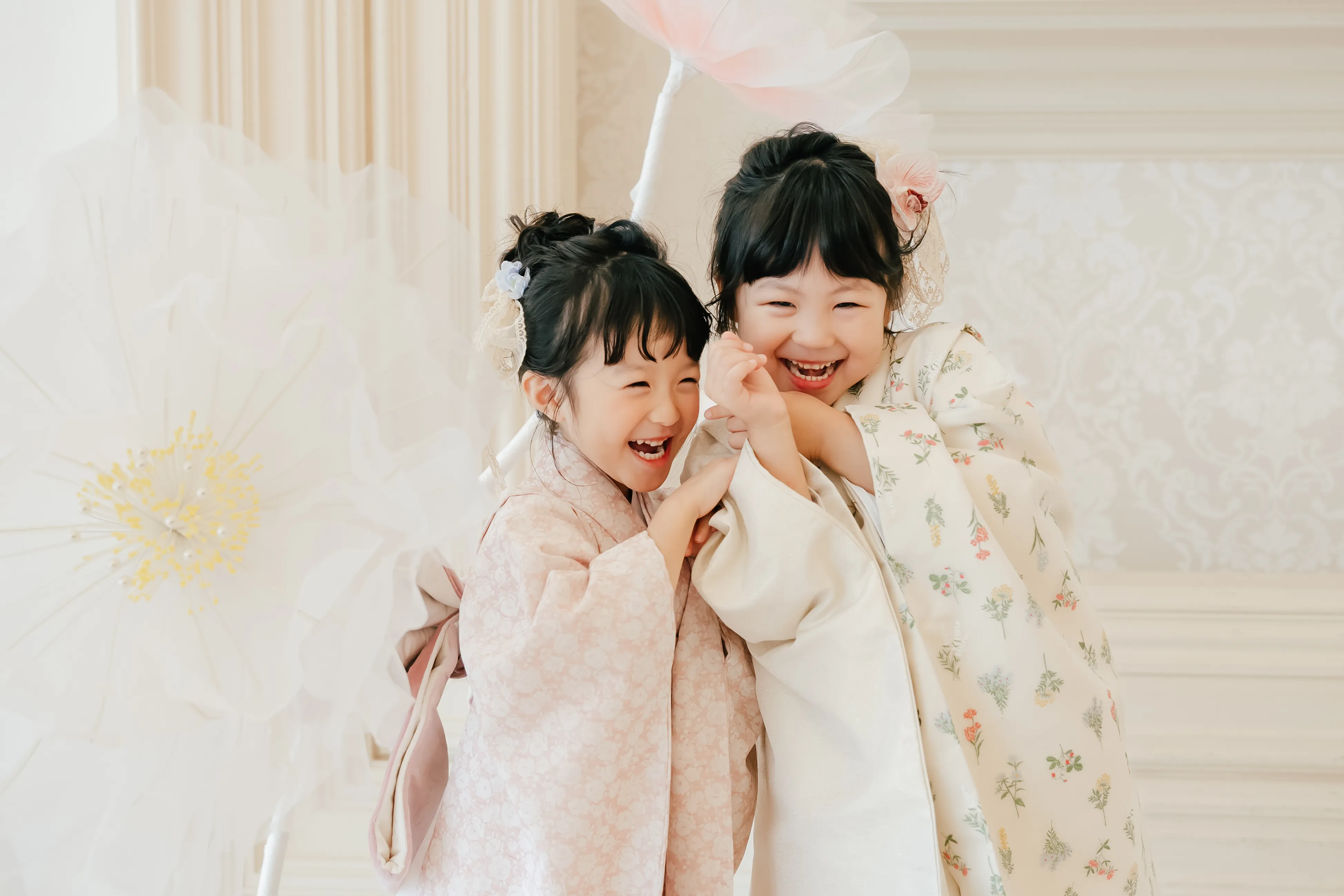 やさしい色合いのオリジナル着物で
